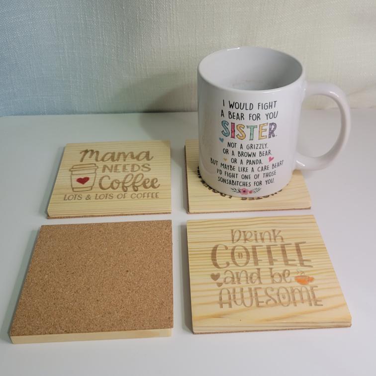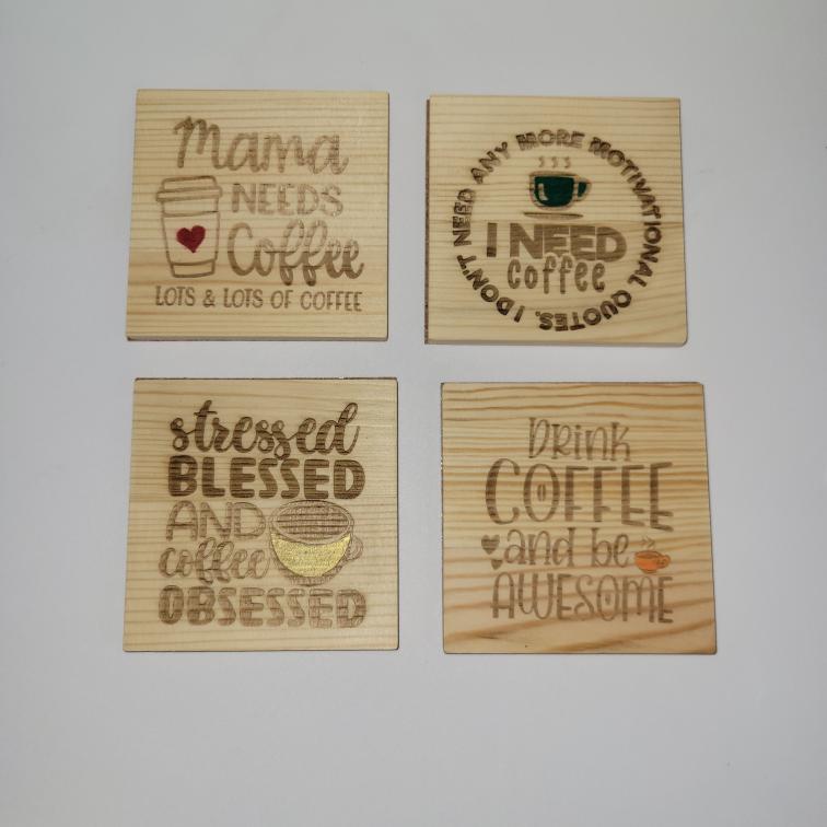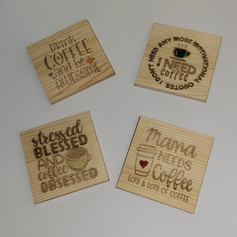 4 Piece Engraved Wood Coaster Set